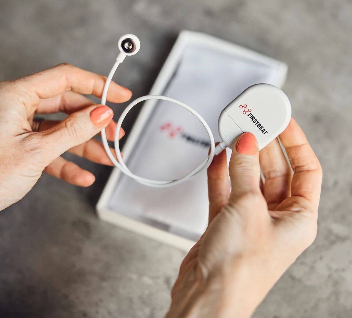 - Het toestel wordt met elektroden bevestigd en slaat verschillende fysiologische parameters op (24/7 live).